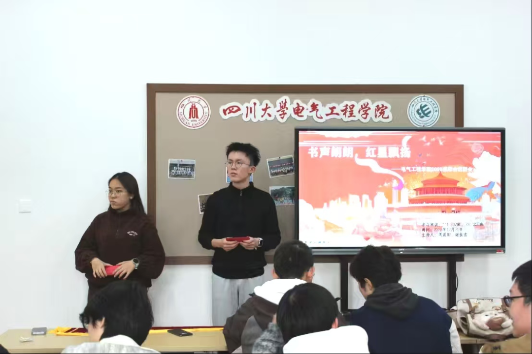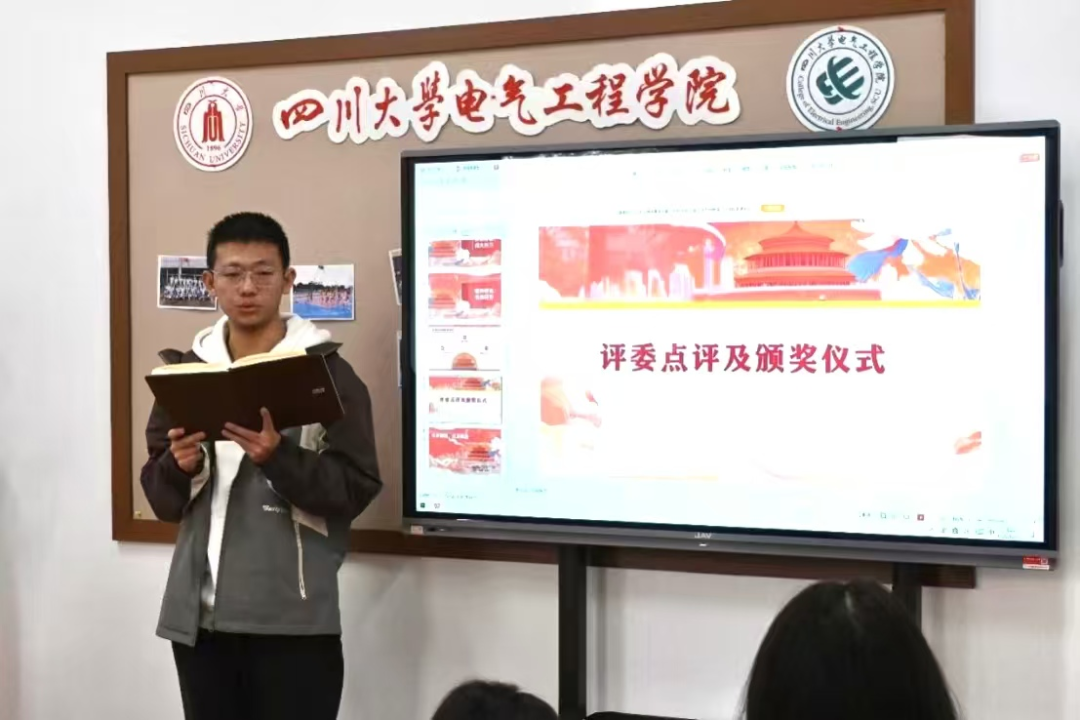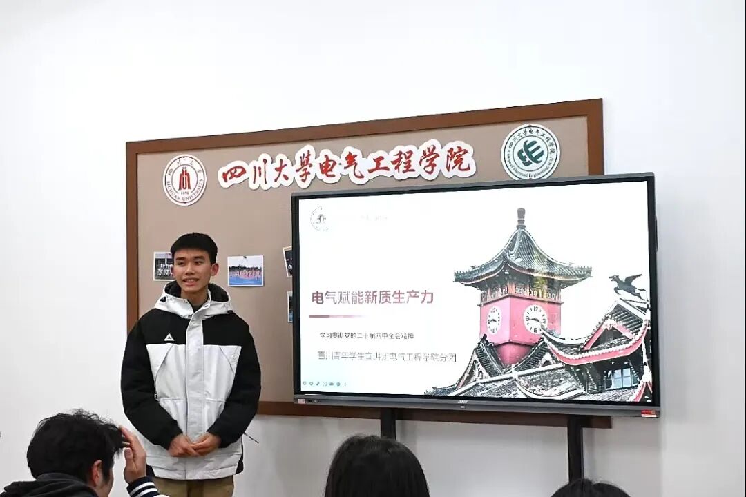读书分享是一场“回溯初心”的精神洗礼,而紧随其后的百川宣讲,则是一次“锚定使命”的实践指引,让红色精神传承与专业使命担当在此刻深度交融。活动下半场,英国365上市公司百川宣讲团成员研究生团支部宋馨月、本科2024级团支部卿朗宁和蒋翀同学开讲。三位宣讲人锚定“建设现代化产业体系”国家战略,以“理论解读”和“实践指引”为脉络,解读新质生产力“高科技、高效率、高质量”核心内涵,阐明电气工程“智能化、绿色化、融合化”属性,及其在智能电网、特高压输电等工程中的关键作用与战略价值。