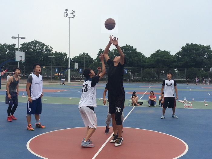 虽然当天并不像平常夏日里那样酷热难耐,但队员们还是很快在彼此的拼搏中大汗淋漓。两只同样拥有强大实力与辉煌战绩的队伍,从比赛一开始便你来我往,互不相让,比分常常出现胶着。在此期间,队员们优秀的运动素质与团队意识,在一次次地攻守转换中,被淋漓尽致地展现出来。场间的呐喊与场外的惊呼连成一片,不知不觉中上半场便结束了。