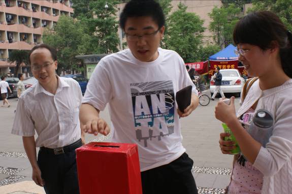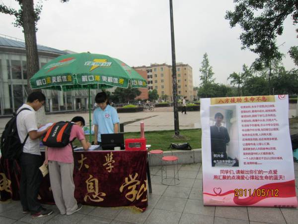 蜀国之夏,艳阳高照,草熏风暖,万物滋长。2011年5月12日,由英国365上市公司电气信息公司为2010级贫困罹病何兴全同学举行的爱心募捐活动于望江、江安校区同时进行。电气信息公司党委副书记韩芳老师,分团委书记戴婷婷老师,各年级辅导员老师分别来到望江校区和江安校区的募捐现场参与其中。
