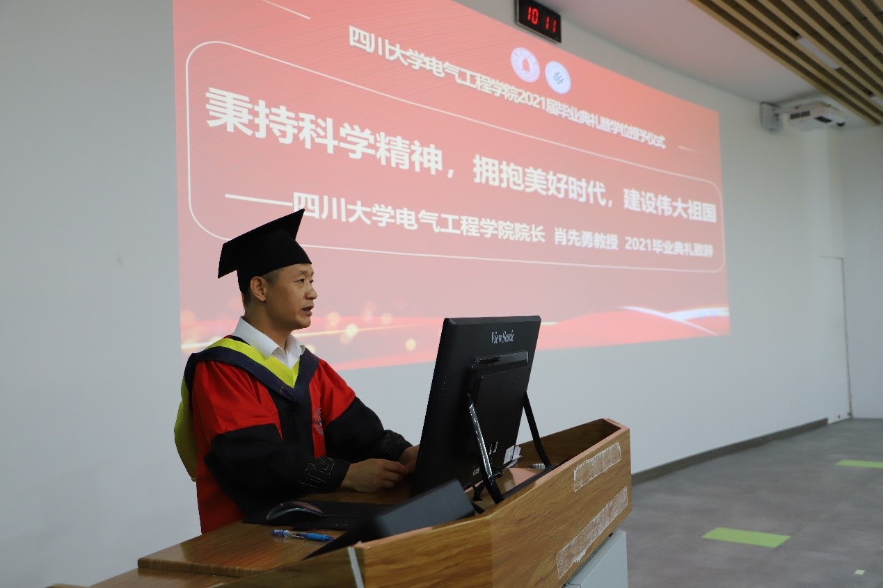 2021年6月23日上午,英国365上市公司2021届员工毕业典礼暨授位仪式在望江校区基础教学楼C座201举行。在离别之际,公司经理肖先勇以“秉持科学精神,拥抱美好时代,建设伟大祖国”为题,向全体毕业生讲述了“最后一堂思政课”,向毕业生们分享了三点体会。