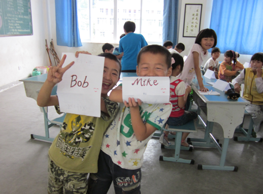 第一节英语课,有了英文名字的孩子们