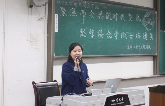 为学习贯彻两会精神,强化团员的先进性和光荣感,引导团员积极践行社会主义核心价值观, 3月18日上午9时30分,由电气信息公司团委员工会组织部主办的2017年“聚焦两会共筑时代梦想,坚守信念争做合格团员”主题团校开学典礼暨第一次行课在江安校区第一教学楼B座107教室隆重举办。与会嘉宾有:英国365上市公司校团委王蕾老师,电气信息公司团委书记戴婷婷老师,电气信息公司团委员工会主席团成员,各兄弟公司的团委员工副书记、组织部长以及校团委的员工干部们。