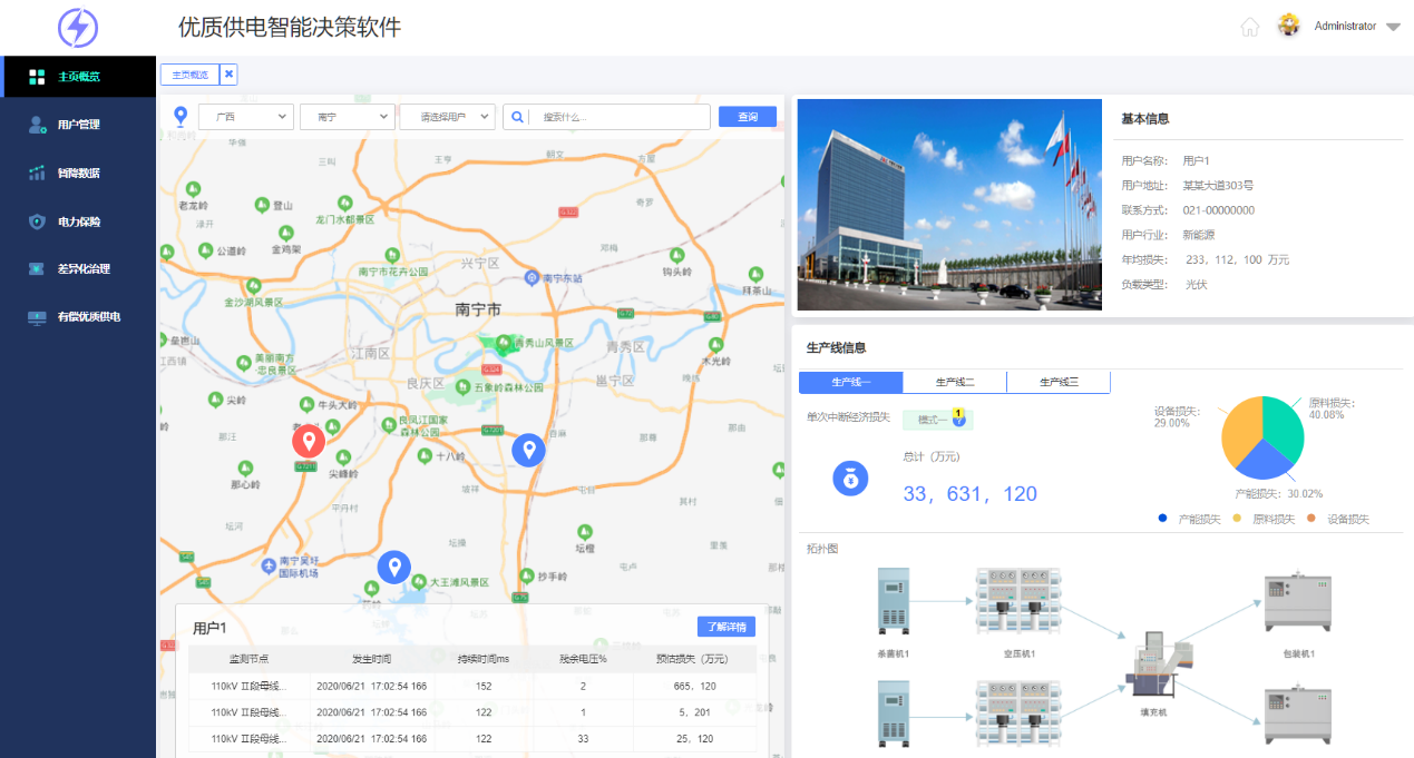 优质供电智能决策软件,通过挖掘电力用户数据价值,分析用户差异化用电需求,提出相应的电压暂降风险规避方案和优质供电方案,最大程度地为用户规避电压暂降风险和减少损失,推动优质供电的改革创新、提升电力营商环境。