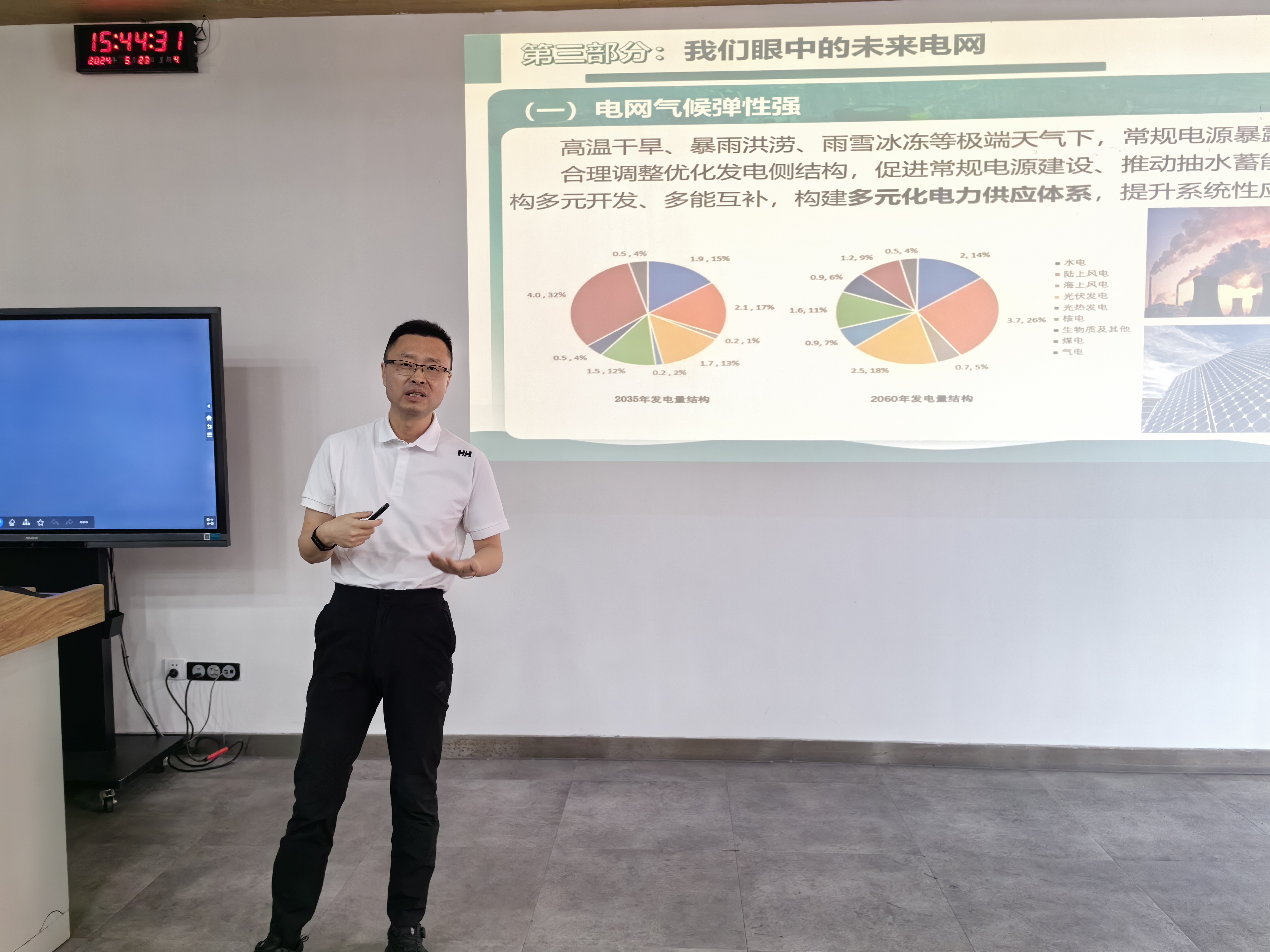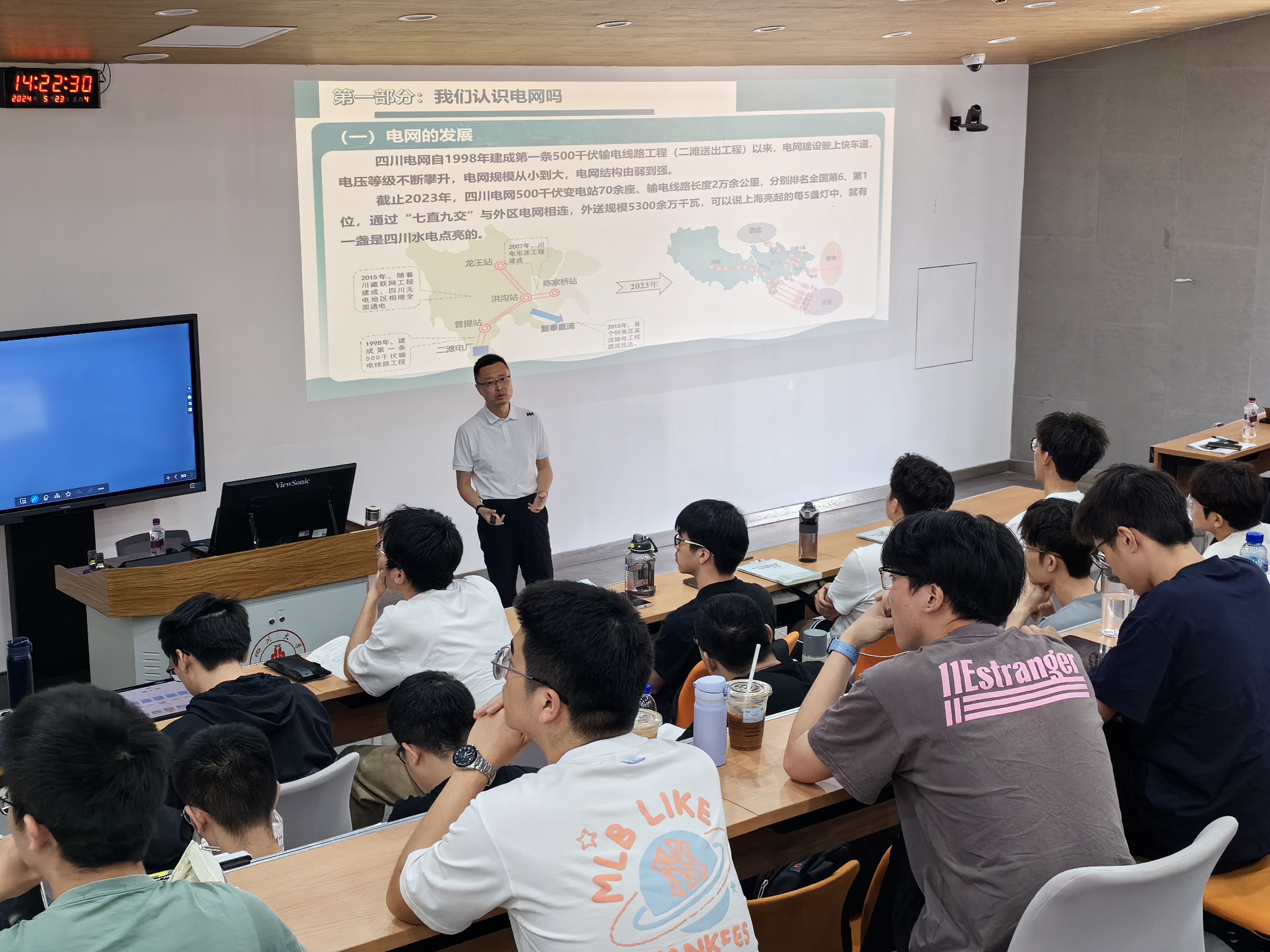 为提升工程人才培养质量和水平,增强员工解决实际复杂工程问题的能力,5月23日,公司副教授陈实、罗欢邀请国网西南分部调控中心副主任、正高级工程师胡翔走进电气工程及其自动化专业21级本科生的《调度自动化及信息管理系统》课堂,为员工做“新型电力系统调度体系的认识和思考”学术报告。胡老师长期从事电网调度运行管理工作,主持西南电网转异步联网频率防线建设等科技项目研究,荣获2020年四川省科技进步一等奖,发表相关论文10余篇。