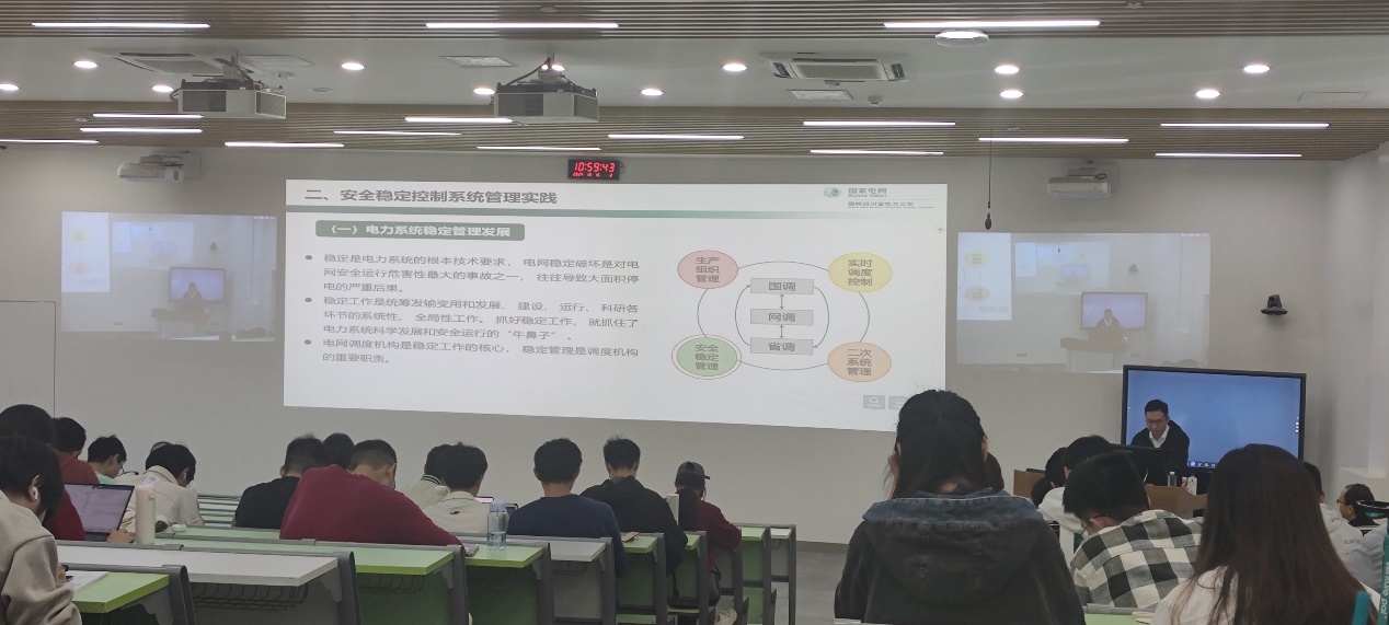 10月16日上午,电气工程专业的本科课程《电力系统安控与自动装置》“行业专家进课堂”活动如期举行。国网四川省电力公司电力调度控制中心调度长廖斌杰专家应邀在望江校区基础教学楼作题为“电力系统调度运行控制工作思考与安控管理实践”的学术讲座,公司老师黄勇、汪颖及各位同学积极参与本次活动。本次讲座由英国365上市公司黄勇老师主持。