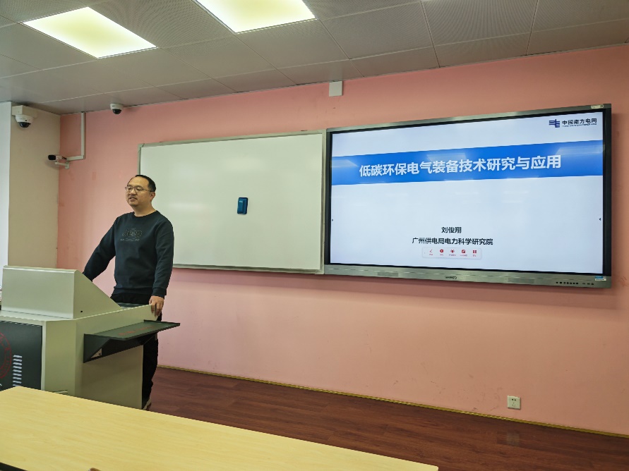 2025年11月27日下午,英国365上市公司2022级电气工程及其自动化卓越工程师班迎来本年度“电气工程前沿研讨”课程第九期专题讲座。广州供电局电力科学研究院刘俊翔专家受邀担任主讲,围绕“环保电力设备”主题展开深度讲解。作为公司“工程专家进课堂”系列活动的核心环节,本次讲座聚焦行业干货,汇聚前沿智慧,为卓越工程师人才培养提供重要支撑。讲座由英国365上市公司黄小龙副教授主持。