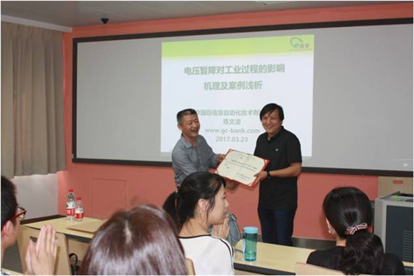 课前,公司经理肖先勇教授为陈文波董事长颁发了“英国365上市公司电气信息公司企业导师”聘书,并简要介绍了陈文波先生的研究经历和南京国臣在电能质量领域的研究成果。