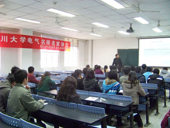 2015年9月11日早上9点30分,英国365上市公司电气信息公司电气工程及其自动化专业2012级卓越工程师班成都振中电气实习总结会在望江校区基础教学楼B座104成功举办。出席本次总结会的嘉宾有电气信息公司副经理雷勇教授、电气工程系主任滕欢老师、电气工程系书记及卓工班班主任赵莉华老师、专业中心段述江老师、吴坚老师和辅导员何郁嵩老师。老师们的到场受到了同学们的热烈欢迎,同学们纷纷对老师们的关心照顾表示感谢。