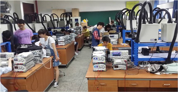本次比赛由电工电子基础实验教学中心负责组织进行,共分三组:电源组、自控组和信号组。其中沈晓东老师担任自控组评委,马雪莲老师和徐航老师担任电源组评委,曹晓燕老师担任信号组评委。共有33个队,99人成功参与测评。比赛的题目难度和模式都按照全国老员工电子竞赛的方式进行。每个小队的队员由“硬件员”、“软件员”、“设计员”分工组成。