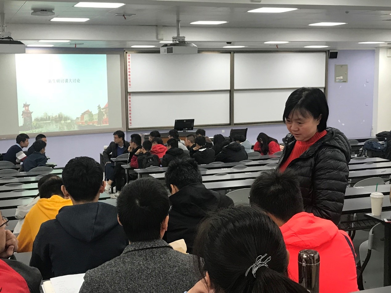 11月中旬,王渝红教授组织最后一堂新生研讨课,采用分组讨论、“翻转课堂”的形式,将发言权全权交给了新生。同时,该专业八名班主任尽数参加,并邀请优秀研究生参与其中,更全面生动地为新生传授经验。课堂上,新生畅所欲言,就“专注学习和全面发展的矛盾”“自主学习与跟随课堂的矛盾”“长期规划与短期计划的矛盾”等问题进行了广泛而深入的交流。