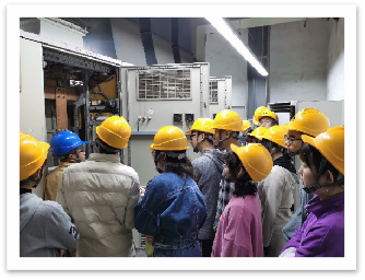 同学们在现场参观控制室、继电保护柜、220kV及500kV变电站