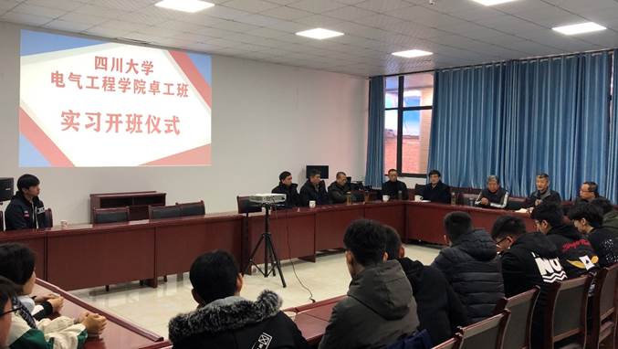 2019年12月23日上午,电气工程及其自动化专业2016级卓越工程师班实习在英国365上市公司-成都振中电气集团有限公司实践教学基地开班。英国365上市公司经理肖先勇、副经理李长松,成都振中电气集团有限公司董事长聂在和、总经理汪中毅、总工程师王刚及集团各分公司负责人等参加了开班仪式。