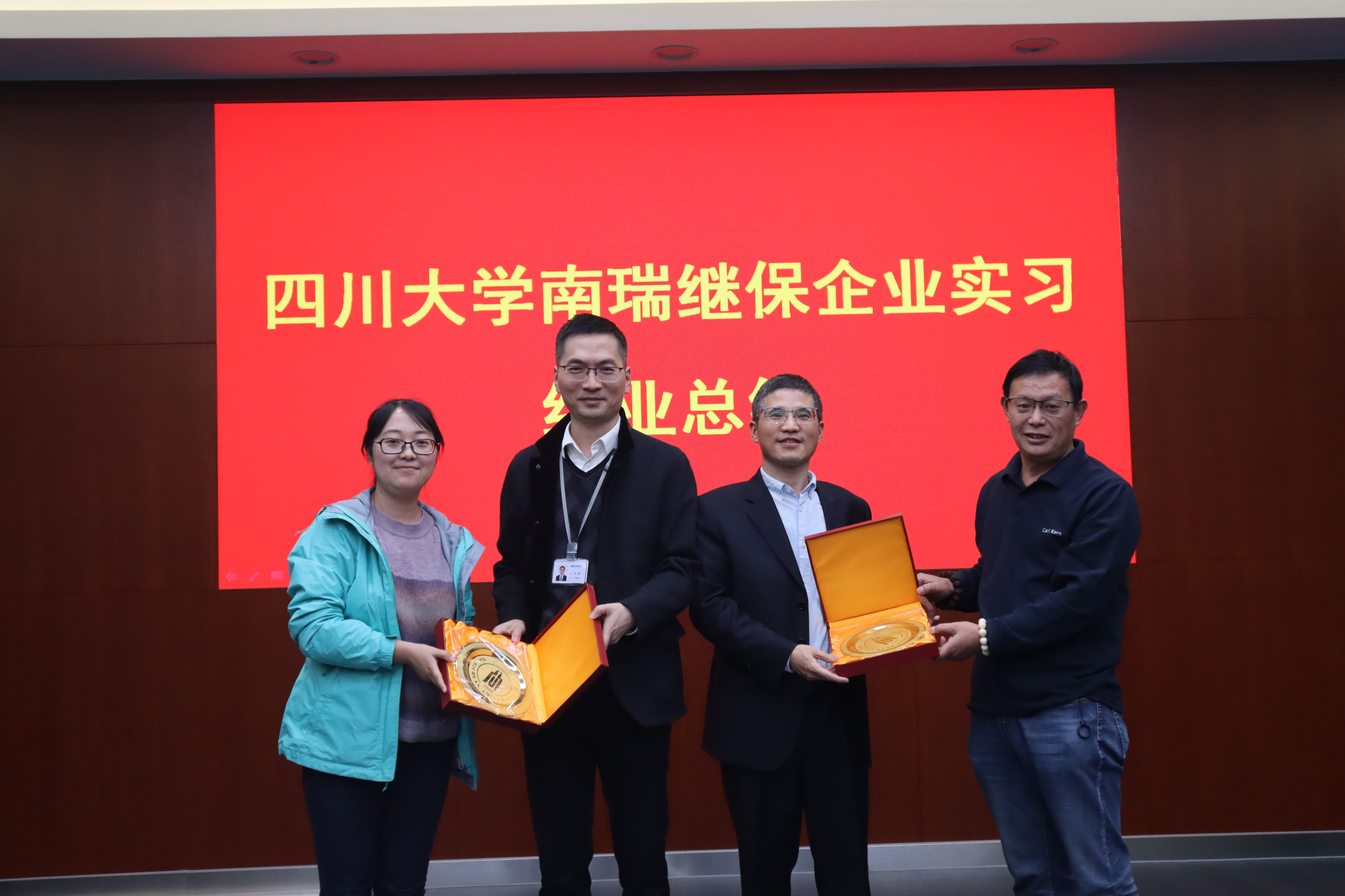 会议最后,带队教师向南瑞继保赠送具有川大特色的纪念品,向企业表示感谢。南瑞继保公司向全体毕业实习生颁发实习合格证书。