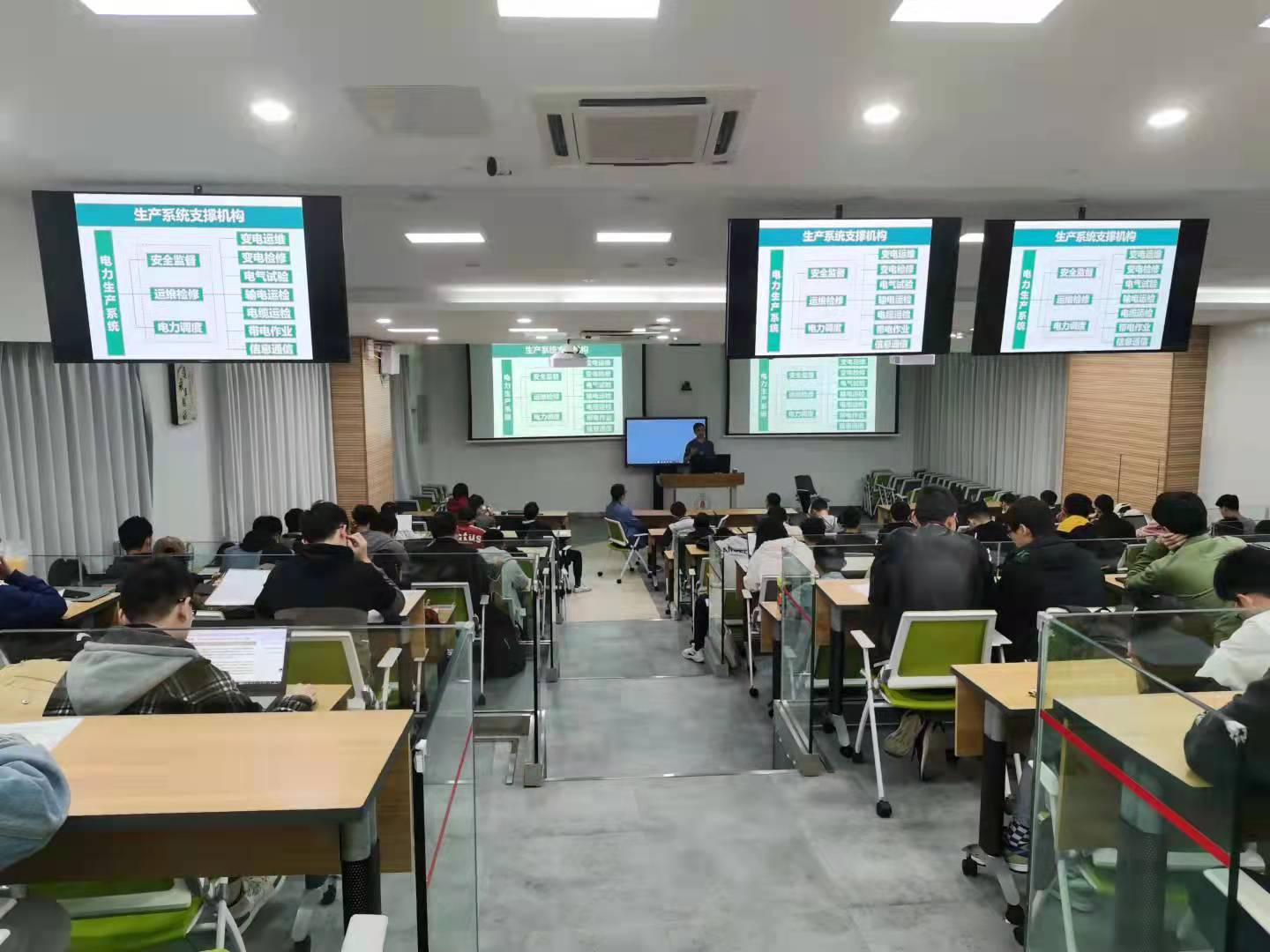 讲座伊始,师生们对万主任的到来表达了热烈的欢迎。讲座中,万主任首先介绍了国家电网的组织机构及电力生产系统的支撑机构,随后就电网变电检修部门一线现状进行了阐述,并指出变电生产业务主要困境在于:一线班组缺员日趋严重,安全生产压力持续增大。