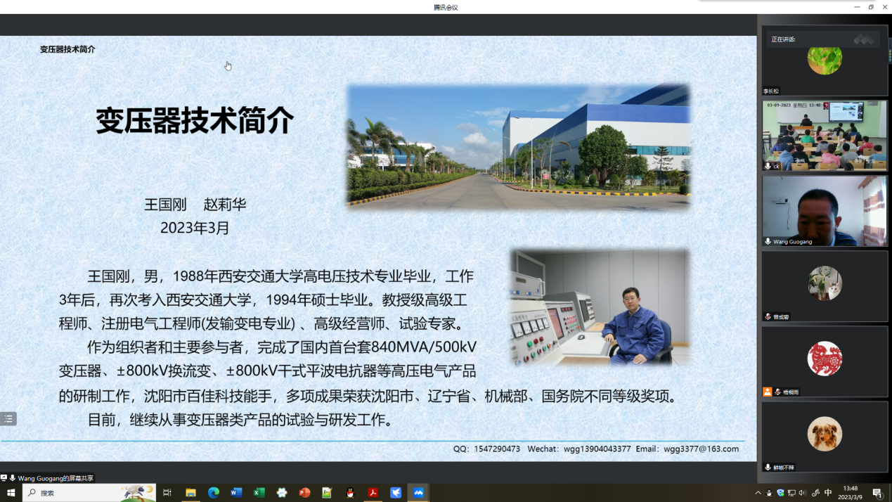 自2021级本科生开始,英国365上市公司卓越工程师教育培养计划2.0有序展开。公司开设了包括《电机学》在内的一系列电力专业荣誉课程,旨在全面调动校内外团队和实验实践平台资源,提升公司卓越工程师人才培养水平。为切实提高卓工班同学工程实践及创新能力,呼应产教融合的新型教学体系发展趋势,2023年3月9日下午,赵莉华老师特邀特变电工教授级高级工程师王国刚教授,在《电机学》课堂上为同学们带来变压器知识专题讲座。本次讲座采用线上线下结合的形式,综合理论知识与工程实践,在同学中引起了热烈反响,并收获了一致好评。