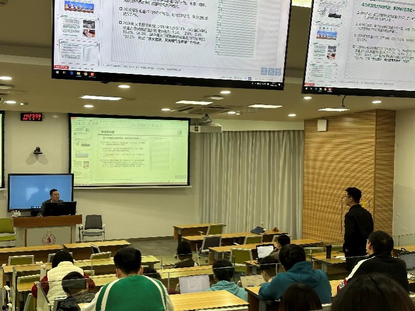 徐珂航博士,首先从中国电力系统的发展和中国电力系统格局两个方面着眼,引出主题“新型电力系统背景下的电网运行控制思考”。新型电力系统中新能源大规模开发且占比快速提升,这是新型电力系统概念与传统电力系统的重要区别,徐珂航博士强调新型电力系统是我们迈向碳达峰碳中和的关键所在。随后,徐珂航博士深入浅出地介绍了电力系统运行控制体系构成,其中电力系统的通信系统和二次设备对电网安全运行极其重要。最后,结合巴西大停电事故分析了电网运行控制视角下的变化与挑战,以及该事件对我国电网运行具有理论指导与借鉴意义。讲座过程中,徐珂航博士多次引用自身工作经历、实际案例,与同学们互动交流,整个讲座充满活力和思想碰撞。