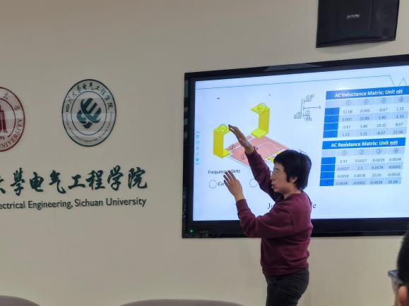 紧接着,荣博士详细介绍了她的研究团队以及他们在电动汽车硅功率模块领域的研究工作。荣博士的研究方向主要为基于海上风电场的多端直流系统及大功率DC-DC转换器的应用和使用碳化硅MOSFET封装电动汽车用转换器模块。她详细阐述了团队最新设计方案的创新点,特别强调了在提高能效、降低成本和优化性能方面的突破。通过对比实验的成果,荣博士展示了新技术相较于传统解决方案的显著优势。
