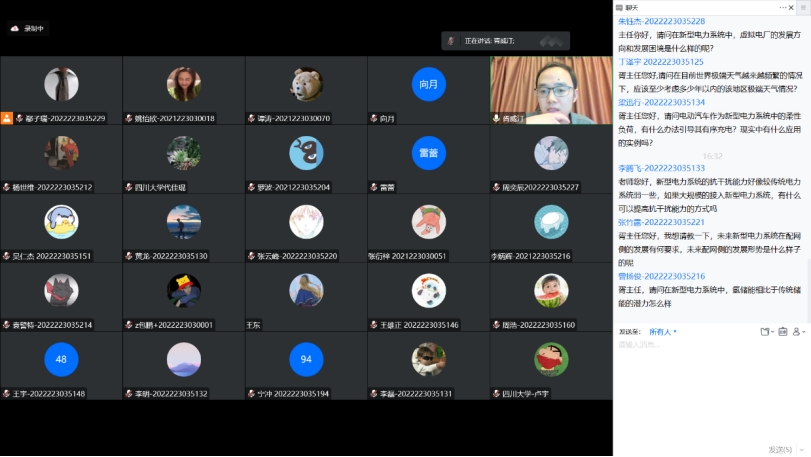 在胥威汀主任精彩充实的讲授后,与会同学们针对自己在相关内容上的疑惑和见解积极展开交流与讨论。同学们纷纷表示,胥主任“四川新型电力系统研究先期布局与路径探索”专题讲座紧贴电气工程学科发展前沿,丰富的专业性知识使自己开拓了眼界,受益良多。
