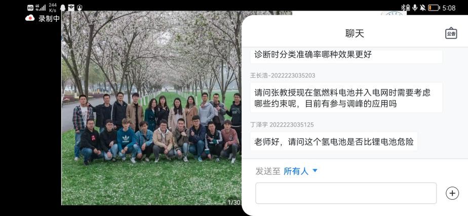 问题讨论环节,同学们向张老师请教了锂电池与氢燃料电池的优势比对、氢能应用的经济性等问题,张老师给予了耐心细致的回答。课后,同学们纷纷表示,通过本次讲座拓宽了专业前沿方向的储备,对氢燃料电池的运行特性影响因素以及如何提高耐久性有了更深刻的认识。