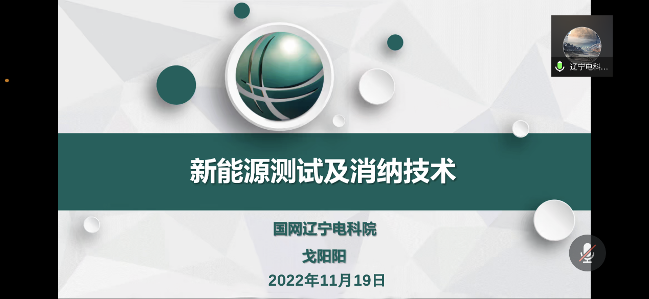 2022年11月19日下午,国网辽宁电科院戈阳阳博士应邀为2022级电气工程专硕研究生开展题为“新能源测试及消纳技术”的学术讲座。本次讲座采用腾讯会议线上举行,由彭乔老师主持。