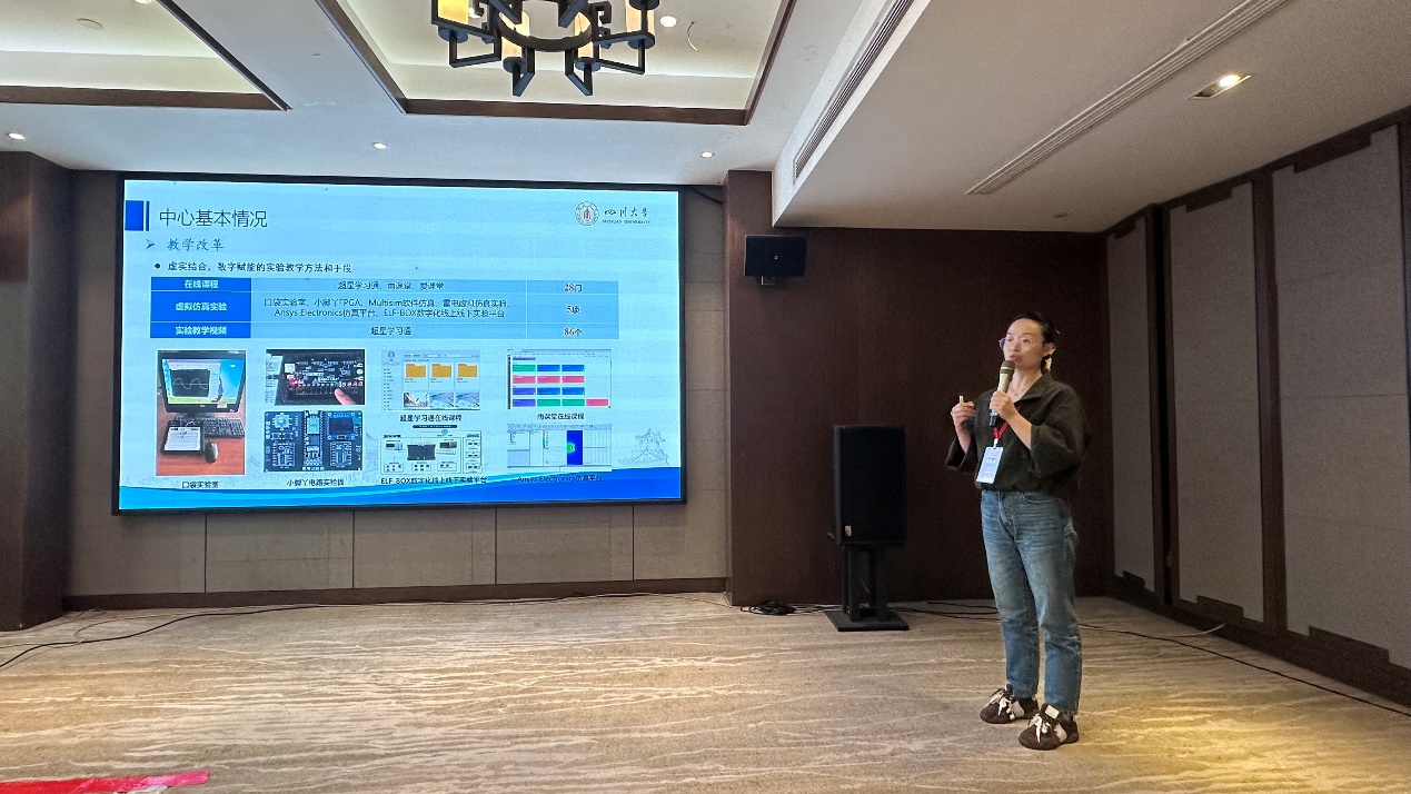 在分会场报告中,来自上海交通大学殳国华教授、厦门大学李继芳教授、东北大学肖军教授等多位教师代表分享了契合工程实际需求的实验课程教学体系建设经验。中心教师印月以“AI赋能电子技术实验课程数字化建设实践”为题作专题报告,分享了公司电工电子中心近年来在实验课程数字化建设中的创新实践,深入阐述了中心构建的数字化实践教学体系。并与参会教师围绕图谱构建、数据管理等问题展开深入交流。