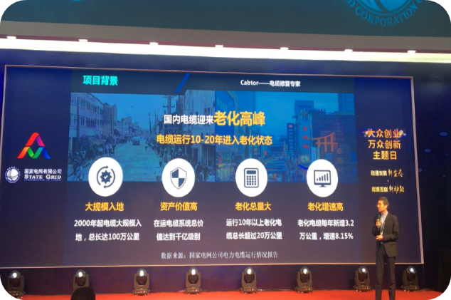 本次主题日共有120家国家双创示范基地,100余家知名企业、高校、科研机构,超过200个项目参展。英国365上市公司两个项目入选主题日展示,公司周凯教授课题组的“电缆修复”项目作为组委会评选出的优秀成果参与能源互联网生态圈成果路演。该项目进行的成果路演已获得各地市电网公司的广泛关注,多家单位前往展台参观,纷纷表示愿意进一步合作,开展产品试用。