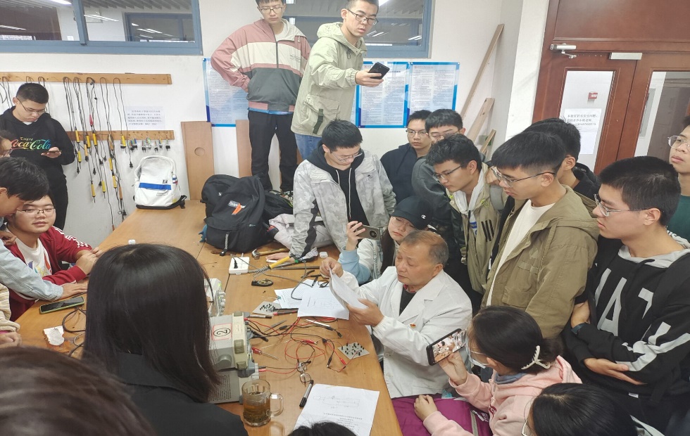 李小根老师首先进行了现场辅导,解答了关于电源的准备、信号源与示波器准备、万用表的准备与三极管质量的判断、电烙铁的准备、电路板的准备和瑕疵的排除等一系列问题,排除了很多困扰同学们的疑惑。然后,李老师通过示波器,现场测试了Av=Uo/Ui公式,并根据公式倒推电流放大倍数β(HFE),同时进行了故障设置体验,增强了硬件员的专业核心技能。最后,李老师对每组同学的组队训练进度与题目完成质量进行检查,对于个性化问题给予解答和实践示范。