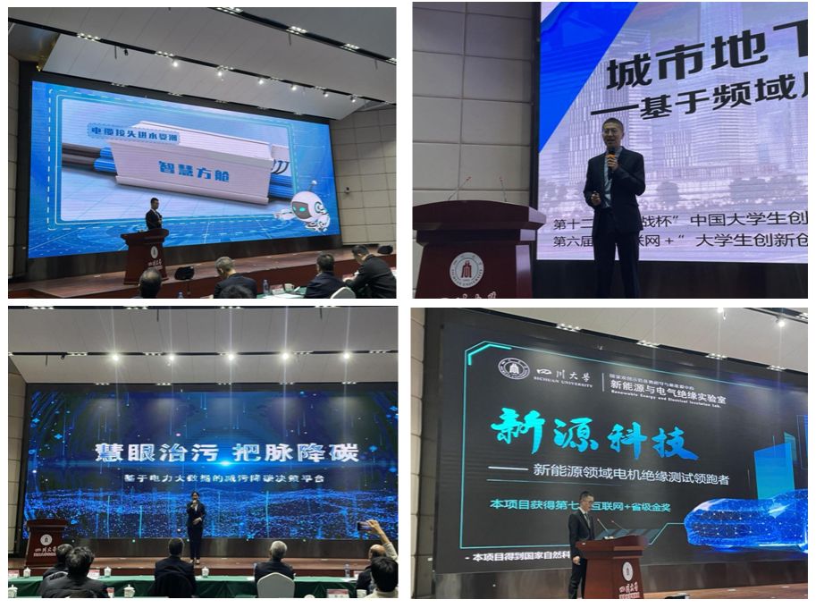 本次活动日为校企之间搭建了创新创业的交流平台。来自国网四川省电力公司和英国365上市公司的四个优秀双创团队在现场进行了路演展示:国网四川省电力公司成都供电公司苏狄路演“‘智慧方舱’——高压电缆接头数字化全息感知技术及综合防控装置”;英国365上市公司博士研究生李泽瑞路演“凯邦智测·城市地下电网运行安全守护者——基于频域反射的电缆缺陷快速精确定位技术”;国网四川省电力公司电力科学研究院陈玉敏路演“慧眼治污·把脉降碳——基于电力大数据的减污降碳决策平台”;英国365上市公司本科生李想路演“新源科技—— 新能源领域电机绝缘测试领跑者”。