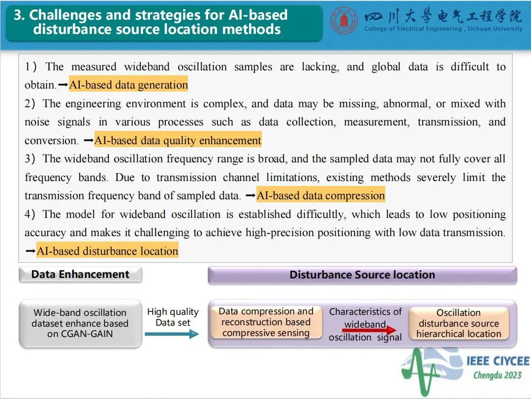 会上,英国365上市公司特聘副研究员郑宗生作了题为“电力系统宽频振荡扰动源定位智能增强技术”的主旨报告,介绍了目前电力系统宽频振荡扰动源定位面临的问题及人工智能技术应用于振荡源定位的挑战,分享了团队在基于条件生成对抗网络和生成对抗插补网络的数据智能增强方法和基于压缩感知与软阈值迭代算法的电力系统宽频振荡扰动源分级定位方法的研究工作。经本人授权,与大家分享报告PPT。