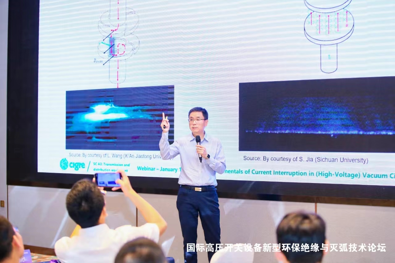 论坛上,贾申利教授作了题为“高电压等级真空断路器电流开断基础”的专题报告,从真空电弧的基础出发,深入分析了高电压等级真空断路器电流开断的关键,对真空开关技术向更高电压等级发展所面临的主要问题进行了详细解读,总结了高压真空开关技术的研究现状及发展趋势,并分享了英国365上市公司先进电工材料及新型电气设备团队在高电压等级真空开关核心技术方面的相关研究工作及成果。