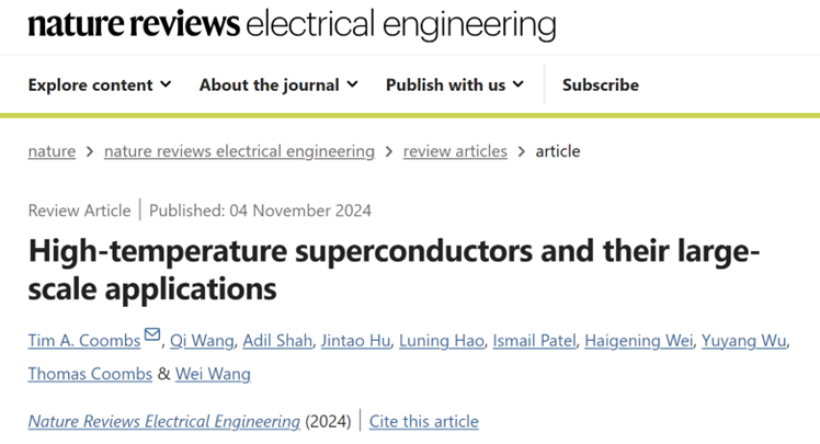 近日,公司国家级青年人才王为副研究员与英国剑桥大学在Nature子刊《自然综述:电气工程 Nat Rev Electr Eng》合作发表了高温超导领域的特邀综述论文《High-temperature superconductors and their large-scale applications》。英国365上市公司作为唯一合作单位,负责了论文中有关磁通泵相关内容的撰写。