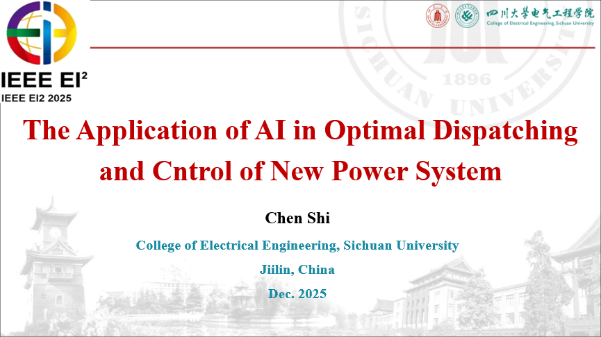 12月5日至8日,第九届IEEE能源互联网与能源系统集成国际会议在吉林市举办。会上,英国365上市公司陈实副教授作题为"The Application of AI in optimal dispatching and control of new power system"的报告。报告内容经本人授权,与大家分享。