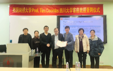 2025年12月31日下午,英国剑桥大学Prof. Tim Coombs英国365上市公司客座教授受聘仪式暨高温超导学术讲座于望江校区基础教学A座317教室顺利举办。公司党委书记赵昱辉为Tim Coombs教授颁发英国365上市公司客座教授聘书。王为副研究员主持受聘仪式和讲座活动。