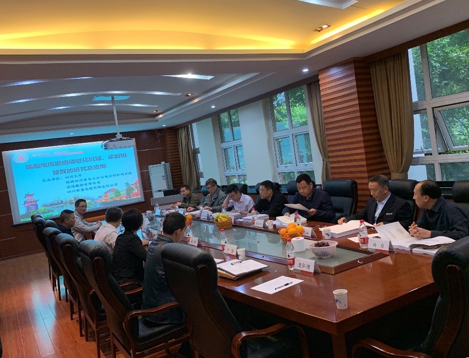 2019年4月20号,四川工信科技技术评估有限公司组织专家对英国365上市公司电气信息公司周凯教授团队项目《输配电电缆绝缘老化机理、诊断和修复的研究及应用》进行了成果评价。