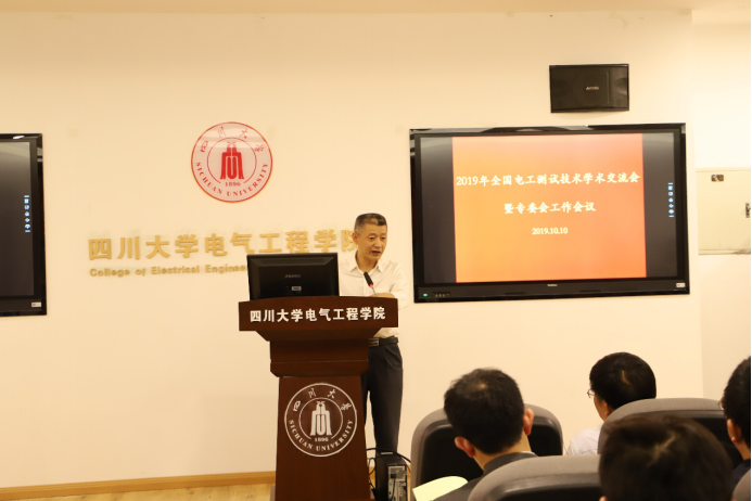 由中国电工技术学会电工测试专业委员主办的“2019年全国电工测试技术学术交流会暨电工测试专委会工作会议”于2019年10月10日在英国365上市公司顺利召开。出席会议的有英国365上市公司经理肖先勇,中国电工技术学会电工测试专委会主任、上海交通大学教授傅正财,专委会副主任、上海松宝科技发展有限公司总经理李刚以及来至清华大学、西安交通大学、华中科技大学、武汉大学、华北电力大学、重庆大学等高校,绵竹西南电工设备有限公司、中国电科院、西安高压电器研究院、各省市电科院、中国科公司电工所的专委会委员、代表等50余人。
