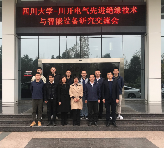 李副总首先对公司先进绝缘技术与智能设备研究团队师生的到来表示了热烈欢迎,并介绍了川开电气有限公司近期发展情况。之后,赵莉华老师就团队的团队力量、科研方向、科研平台及科研成果等情况做了简要介绍,表示团队与电力公司、电科院、设备制造企业等一直保持长期友好合作,也希望加强和川开电气的合作。随后,姬经理详细介绍了川开电气在产品研发、设计、生产、销售和安装过程中的经验以及所面临的问题。在相互了解的基础上,双方就目前开关设备绝缘气体、电力绝缘材料、绝缘设备在线监测与诊断技术等关键技术问题,特别是开关设备中SF6气体的替代、断路器和变压器等电气设备在线监测和故障诊断方面进行了深入的探讨。