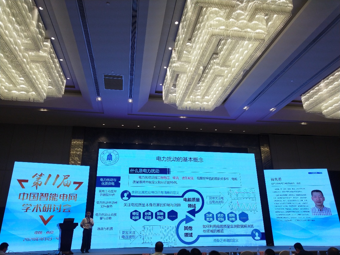 大会首先由周孝信院士、薛禹胜院士、余贻鑫院士、罗安院士做精彩报告。随后,公司肖先勇教授以《电力扰动数据分析与应用方法的探索》为题作报告。报告主要从电力扰动与优质供电、面向主动应用的数据分析、电力扰动主动感知与服务、电力扰动主动预警与诊断、挑战与机遇等五个方面进行展开。肖先勇教授首先讲述了什么是电力扰动,以及为什么需要优质供电,引出此次报告的核心内容。他详细介绍了传统电能质量分析和主动应用电力扰动数据的区别,并围绕主动感知、主动服务、主动预警和主动诊断四个方面来体现电力扰动数据的主动应用。最后,肖先勇教授进行展望,他阐述了现代电力扰动数据分析与主动应用得挑战与机遇。会场上,交流气氛浓烈。