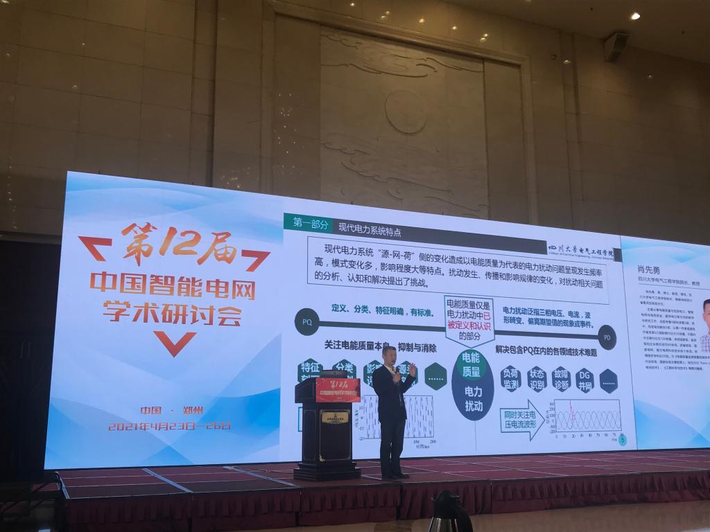 2021年4月24日,第12届中国智能电网学术研讨会在河南郑州黄河迎宾馆隆重举行。公司肖先勇教授受邀参会,并作了主旨报告。