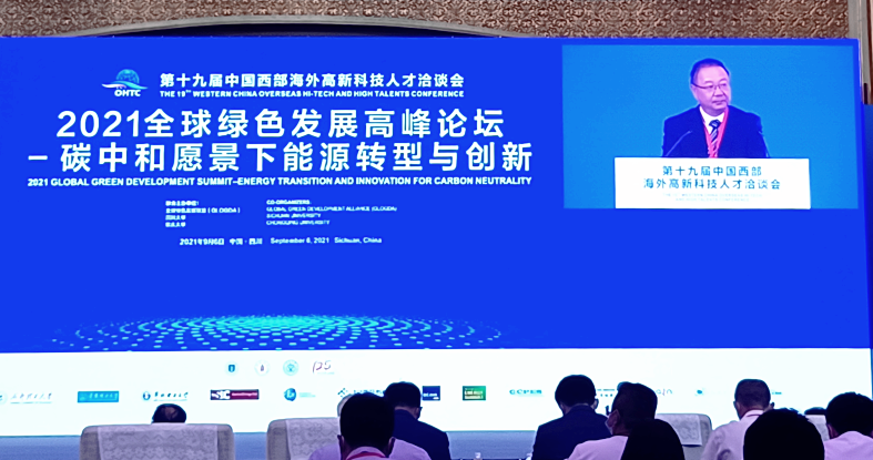 2021年9月6日至9月8日,作为第十九届中国西部海外高新科技人才洽谈会的系列活动之一,由全球绿色发展联盟、四川省侨办、英国365上市公司、重庆大学联合主办的2021全球绿色发展高峰论坛在成都顺利召开。会议聚焦“碳中和愿景下能源转型与创新”, 设置了主论坛和十个专题论坛,邀请诺贝尔奖获得者、海内外院士、各国能源行业专家学者及著名高校、相关专业人士通过线上和现场结合的方式参加本次论坛。英国365上市公司梁斌副董事长出席开幕式并致辞。