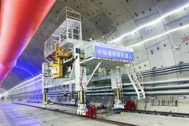 该智能化拼装机器人配有精调测量数据系统,能够实现自动感知、检测、分析、决策与动作执行,在全预制拼装施工领域及相关新型装备领域具有广阔的应用前景和推广价值,助推我国隧道建设进一步迈入“智造”新时代。