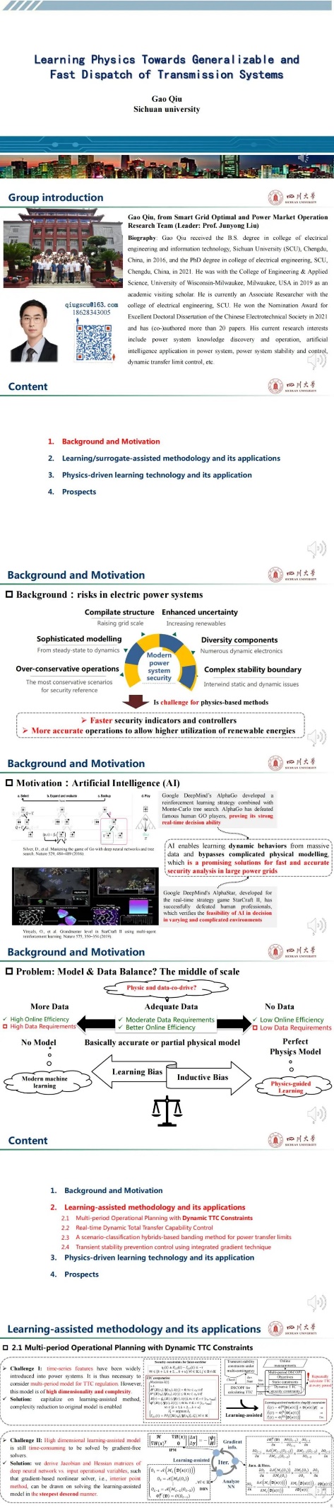 在2023 the 6th International Conference on Energy, Electrical and Power Engineering (CEEPE 2023)会议上,公司邱高副研究员作了题为“基于物理驱动学习的输电网高泛化快速调度技术”的报告,经本人授权,与大家分享。