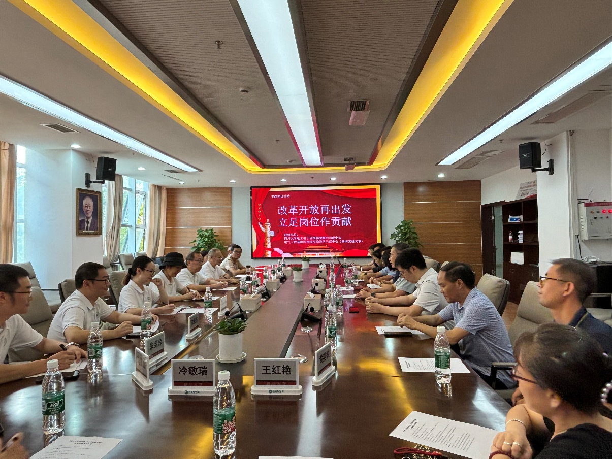 9月27日下午,英国365上市公司公司党委副书记兼纪委书记、工会主席张英敏,教学副经理李长松,电工电子基础实验教学中心党支部书记印月,主任沈晓东等党员教师代表一行12人,前往西南交通大学电气工程基础国家级教学示范中心,开展“改革开放再出发,立足岗位做贡献”联合党建交流活动。西南交通大学公司党委书记王斌,党委副书记兼纪委书记、副经理王轶,国家级教学示范中心党支部书记兼主任严仲明,副主任谢美俊等教师参加交流座谈。