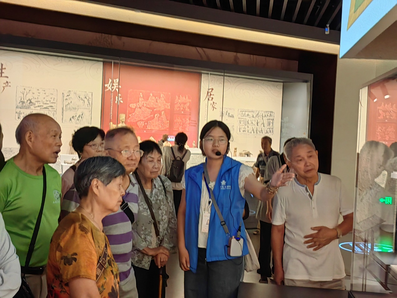 本次参观学习主要参观了博物馆新馆一展厅“自然篇-万物的交响”和二展厅“考古篇-历史的断面”两个部分。讲解员对祖国西南天地的历史、古物、文化艺术、民族风貌、山川地理作了丰富而细致的讲解,通过对动植物标本、陶瓷、青铜器、古钱币、古印、刺绣、漆器、拓片的阐释和描述,老同志们深深体会到了我国西南地区民族悠久、深厚的文明积淀。