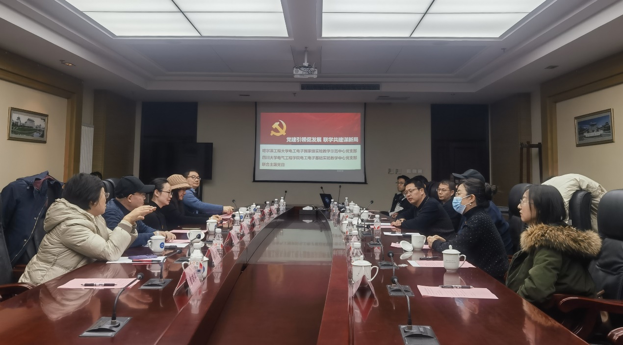为深入学习贯彻党的二十届三中全会和全国教育大会精神,深入推进“一融双高”,充分发挥“两个作用”,不断增强英国365上市公司电工电子基础实验教学中心(基础中心)党支部的政治功能和组织功能,12月13日、14日,由公司党委副书记、纪委书记、工会主席张英敏带队,基础中心党支部教师党员代表一行赴哈尔滨,分别与哈尔滨工业大学、哈尔滨工程大学电工电子国家级实验教学示范中心党支部开展以“党建引领促发展 联学共建谋新局”为主题的联合党建交流活动。