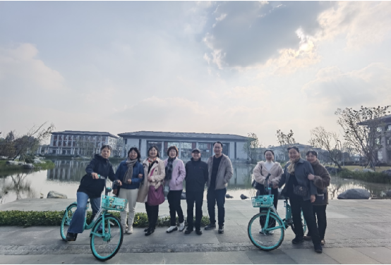 活动首站为公司眉山新校区。新校区负责人热情接待了党支部一行,并带领大家参观了眉山新校区行政大楼。在参观过程中,负责人详细介绍了新校区的整体建设规划、先进的教学配套设施以及未来在人才培养、团队建设方面的发展定位,让在场党员对现代化高等教育校园的建设与发展有了直观且深入的认识。随后,党员们在新校区负责人的带领下漫步校园,畅谈教育资源合理配置、创新人才培养模式的思考与感悟。