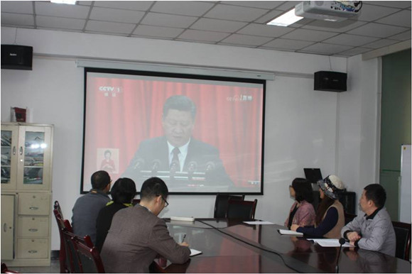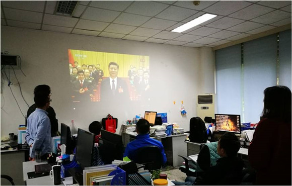 公司党政办设置集中观看点组织教师观看十九大开幕式