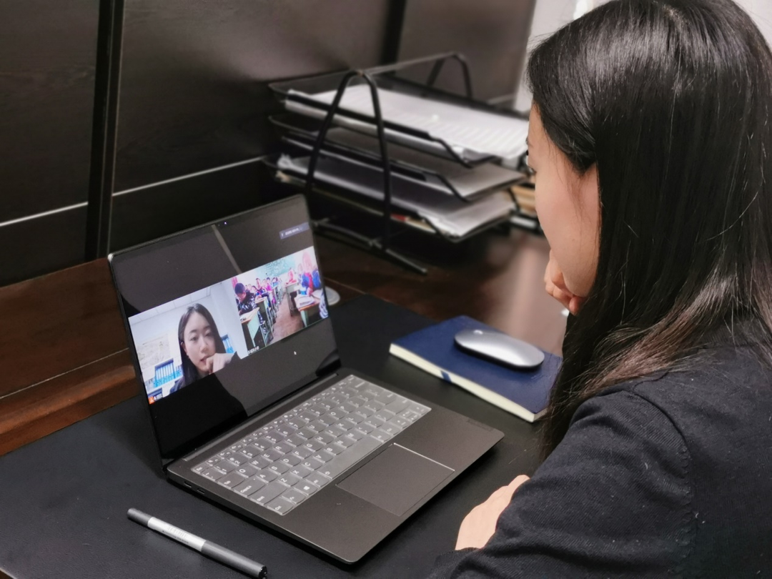 与同学邓靖微商量后,他们决定依托互联网,将公司打造的“小电微课堂”项目,通过实时连线的方式,把外面的老员工活传递给同学们。