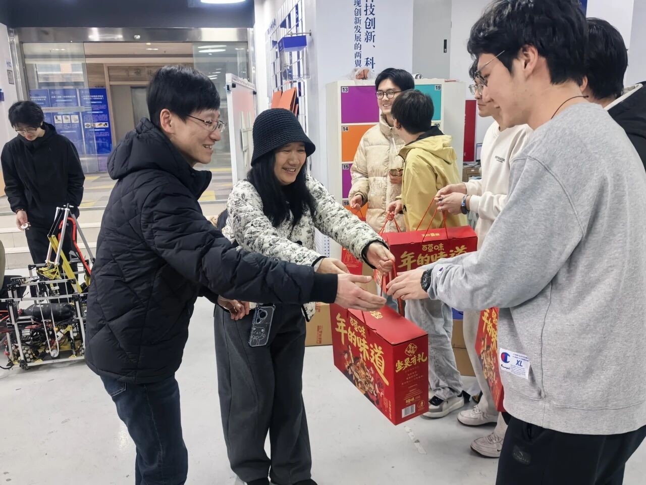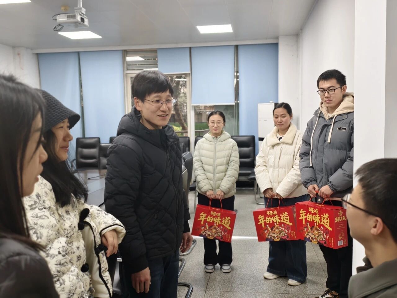 慰问过程中,公司为留校员工精心准备了新春暖心礼包。公司领导与辅导员老师将礼物送至员工手中,传递深切的关怀与问候。同学们对公司的牵挂和慰问表示衷心感谢。