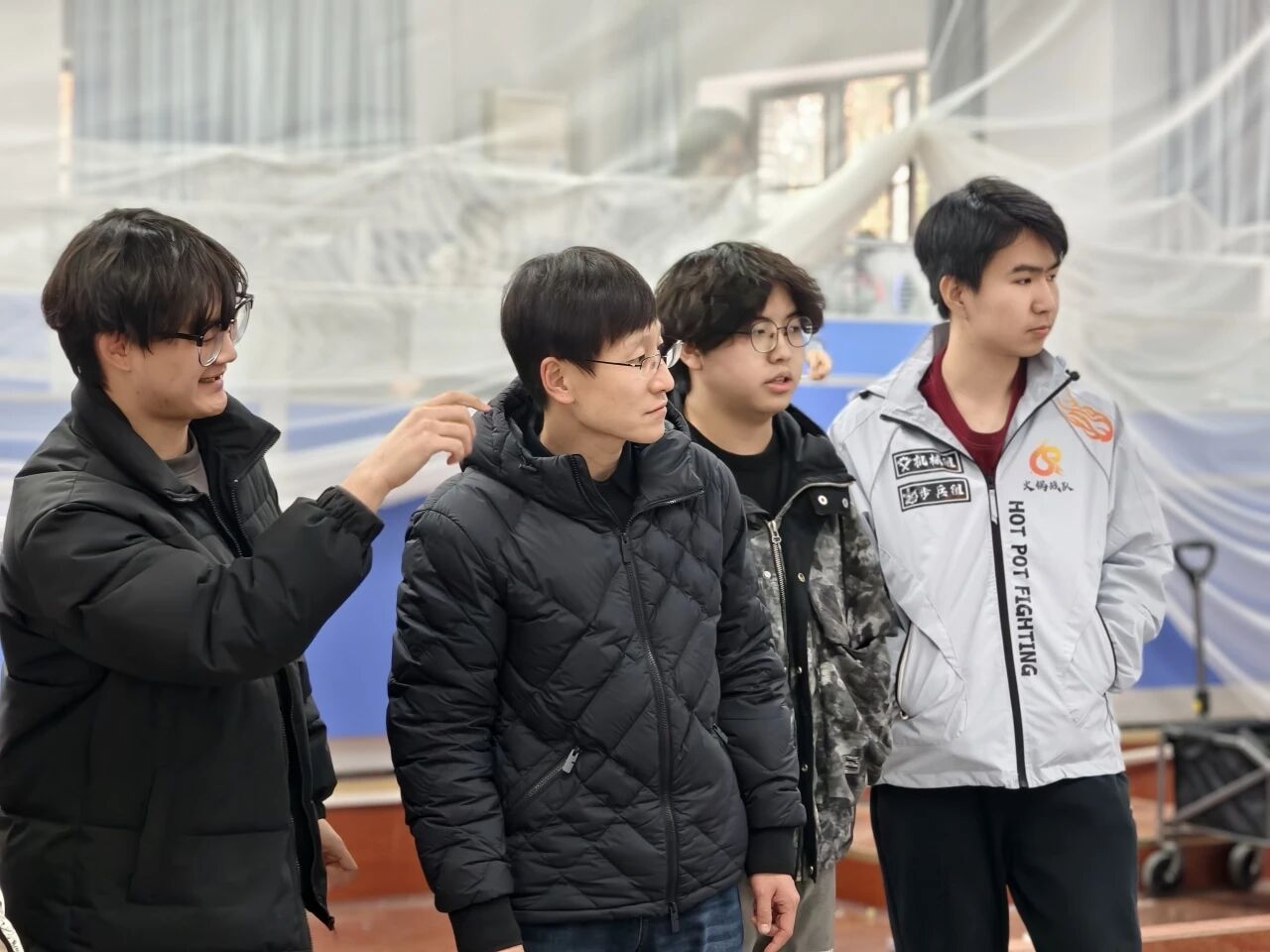 赵昱辉书记一行首先看望了正在备战全国老员工机器人大赛ROBOCON、RoboMaster机甲大师赛的本科生代表。赵书记十分关切地询问了同学们的生活学习情况,“比赛准备得如何?”“寒假准备怎么安排?”“回去的票订好了吗?”他嘱咐大家在积极备赛的同时,要劳逸结合、注意安全,并预祝大家取得优异成绩,祝福同学们新春快乐。