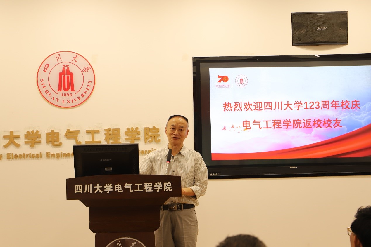 随后,63级电机电器制造专业付肈宾、63级发输配专业张泽元、65级电机电器制造专业余顺东3位员工代表先后致辞。他们向为校庆精心筹备、周到安排、热心服务的公司领导、老师和同学们表示衷心的感谢,表达了作为川大学子感到无比自豪和光荣,感谢母校给他们带来智慧学识、拼搏的力量、做人的原则和奋斗的方向,为祖国、母校、母院的发展壮大他们喝彩点赞。为了感谢母校,他们倾情献给母校一首小诗: